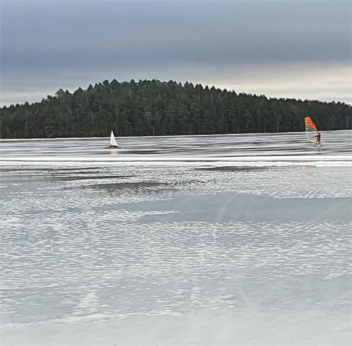 Mest is och byig vind. Men Strandvägen var det barmark. Jag körde med Spikey och då blir det väl hårt med barmark men nödvändigt på isiga partier. Fanns kortare delar med svallis där man fick trippa lite fint även med spikar under fötterna. Tog det lugnt men känner att jag har brist på långpass i den gamla kroppen. Men jobbar ju nu på det. På Runn åkte många skridskor men även lite mer fartfyllda saker.
