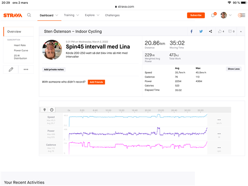 typ, distans, tid och snittfart. Stjärnmedlemmar kan kopiera samtliga fält och diagram.