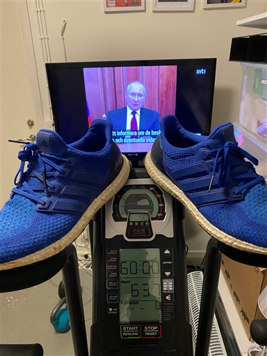 En träningsgalen man fastnade längre än planerat framför en annan galen man (Putin) på morgonnyheterna denna morgon. Det är verkligen sjukt vidrigt det som sker och lovar Putin vapenvila lovar jag vilodag från Airdyne! Snälla ta mitt erbjudande och sansa dig/mig.