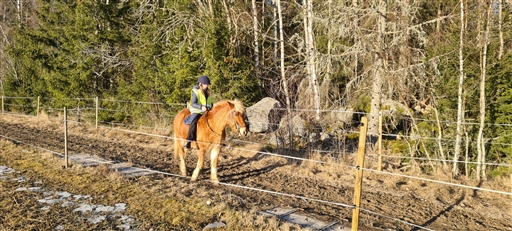 Hängde med och sprang bredvid när Molly var ut på ridtur med Strakur.