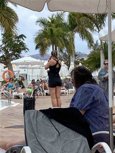 Anneli o jag o hela poolen full börjar molnigt sen sken solen
