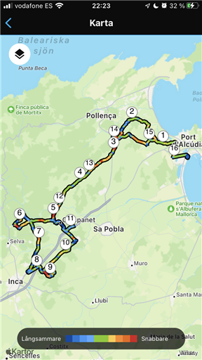 typ, distans, tid och snittfart. Stjärnmedlemmar kan kopiera samtliga fält och diagram.