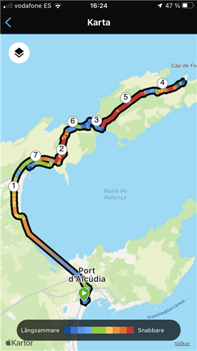 typ, distans, tid och snittfart. Stjärnmedlemmar kan kopiera samtliga fält och diagram.