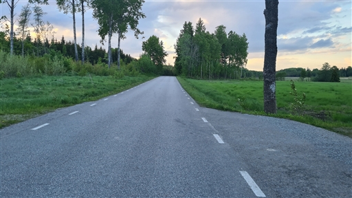 Blandad kvalitet på asfalten. Riktigt plågsamt sista biten från Salbohed med grov asfalt och skavsår vid fotknölarna.