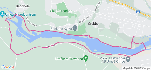 2:a km på "nya" rundan är terränglöpning på riktigt, har börjat följa kloss med älven fram till 3-vägskorsningen vid Backenkyrkan.