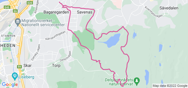 Jag fortsätter köra distanspassen i terräng. Små kuperade stigar mestadels, när jag väl kommit bort från gatunätet. Glömde ta vätska med så det blev drickapauser vid Härlanda tjärns kiosk och i Skatås. Dessutom korta pauser på kanske en halv minut för att pusta lite efter ett par särskilt jobbigt partier.
