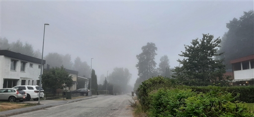 Hemifrån till Huddinge, del av vägen till jobbet. Tjock dimma, behaglig temperatur.