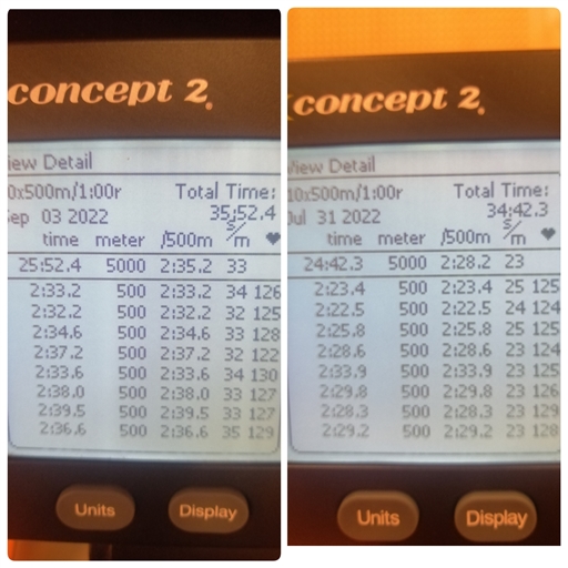 10x500m på både rodden och stakning.