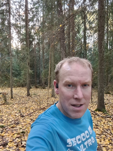 Skön runda i den höstiga gula skogen.