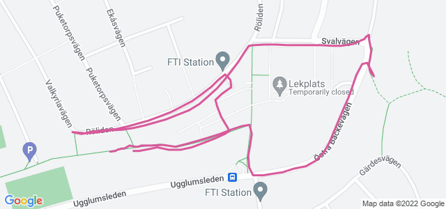 Först cykel i källarn + cykel till Vallhamra IP. Sedan jogg kors o tvärs...