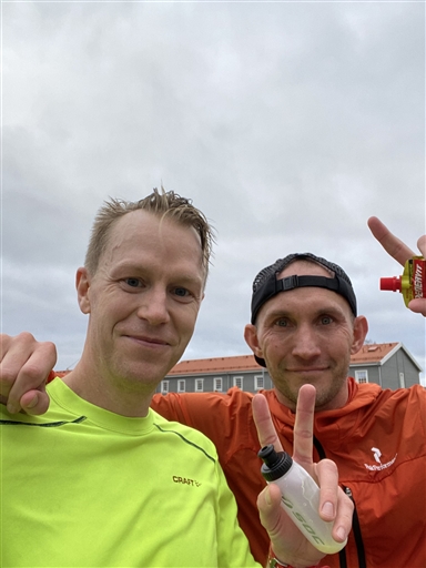 Tog 20g kolhydrater via sportdryck innan start och körde första 10´an själv. Plockade upp en flaska med 20g till hemmavid där Härdan väntade. Efter andra 10´an en Enervit liquid gel och inför sista 5´an en Enervit liquid gel (kffein). 80g totalt och testade 2 st Enervit Salt Caps efter 60´.