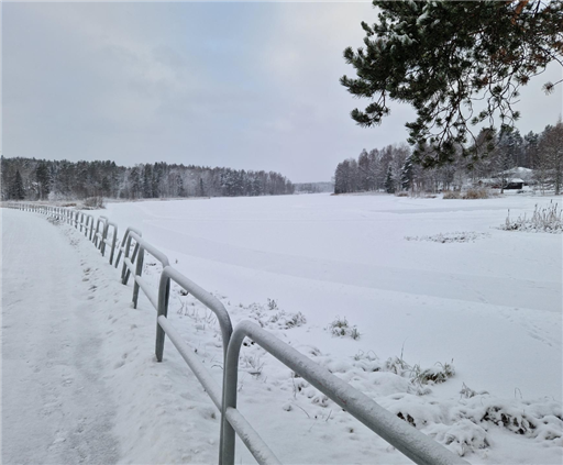 Önsbäcksdammen. Lätt snöfall och inte alls lika kallt som igår.