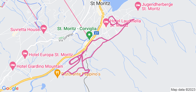 Kom fram till St Moritz efter klockan 16. Vi packade snabbt upp bilen rekade bostaden och därefter drog vi ut på första testrundan med skidorna. Det hann redan bli mörkt så pannlampan var ett måste. Vi hittade en pistad väg ut mot skogen som sen ledde ut i en gångstig som till slut kom till en upplyst arena som även hade spår dragna. Känslan var magisk, sjukt roligt att komma ut på skidor i sån här miljö, vi tog ett par varv på arenan. Vi hittade en karta spårkarta på området och hittade en slinga vi ville åka, gav oss ut och efter en stund blev det väldigt mycket uppförsåkning. Efter en stund insåg vi att vi åkt fel och fick åka nedför och in på arenan igen. Tog skidorna hem via en inneväg, råkade åka för långt och fick vända tills vi hitta tillbaka. Avslutade dagen med uppvärm lasagne.