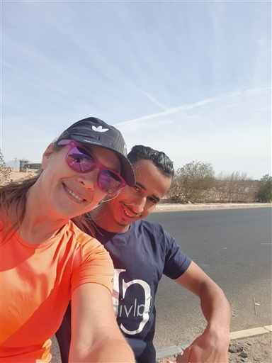 Lugn runda runt hotellen. Jag fick sällskap av Abdullah längs vägen.