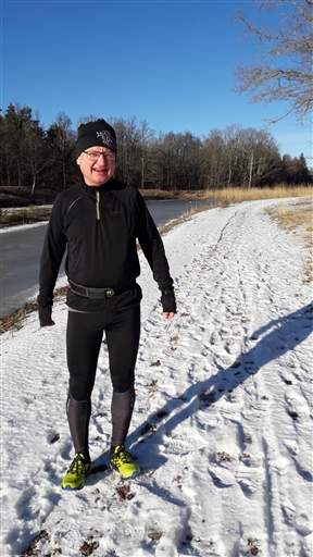 Fladdermusrundan med Lukasz. Härligt löparväder men bitvis obehagligt halt på packad snö och is.
