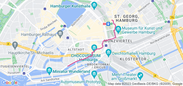Mäh, jag hade tänkt att få hela dagens promenad på ett pass och pausade klockan både vid operahuset och Miniatur Wonderland. Första gången gick det bra men andra gången had det gått för lång tid vilket jag inte märkte. Tryckte bara en gång på startknappen vilket väckte klockan ur dvalan men inte körde vidare på passet. Märkte inte det förrän efter några minuter så det fattas 500 meter och fem minuter.