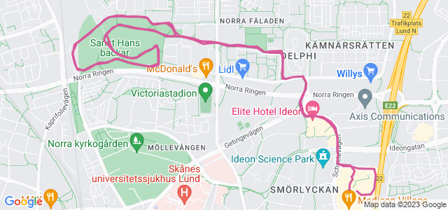 Har tur och slipper undan regnet. Tar 2 varv ute på St Hans. Uppförsbackarna känns lite jobbigare idag.