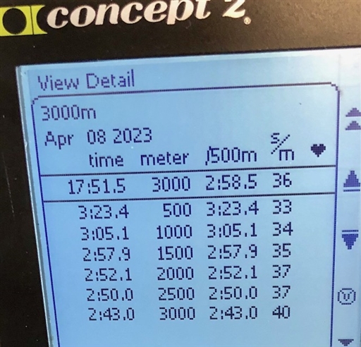 Ett bra sätt att inte anstränga foten, men man rör sig inte ur fläcken 🙂. Har lärt mig lite mer om SkiErg, så idag blev en bestämt 3000m pass. Kul, och så blev lite progressiv också.