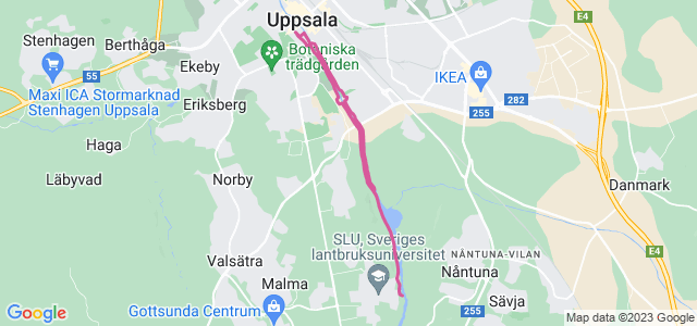 Den vanliga fina vändan ändes Fyrisån. Motvind på resan söderöver, betydligt lättare på tillbakavägen. Fem korta snabba mot slutet. Bättre ben idag.