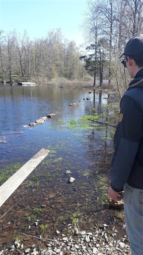 Helt underbar vårutflykt med döttrar, svärsöner, barnbarn och hund. Hindren bestod av en mängd fällda träd och en översvämmad pir vid näset. Det var bara att ta av skorna och vada i iskallt vatten på vassa stenar.