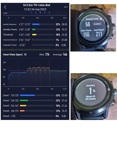 5×2 km tröskel med förlängd upp och nedjogg. Rätt intensitet, tror aldrig jag haft så mycket tid i tröskelpulszon på ett enskilt pass tidigare. Men sega ben som gick tydligt långsammare än i tisdags ffa. Känner mig som klockan visar och det ska bli toppen nu med två vilodagar efter en tuff träningsvecka!
