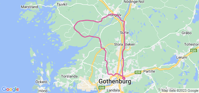 Vilodag i löpschemat men fint väder – då blir det cykling, det är sen gammalt. Ganska svag västlig vind gjorde att en sväng via Kornhalls färja och Kärna kändes som ett naturligt val. På så sätt fick jag också medvind på den långa raka och platta sträckan mellan Kärna och Ytterby och kunde enkelt ligga en bit över 30 där. Sen blev det obligatorisk glasspaus vid Bohus fästning innan jag fortsatte hemåt. Krämade på lite extra i sista uppförsbackarna från Gustavsplatsen och hem.