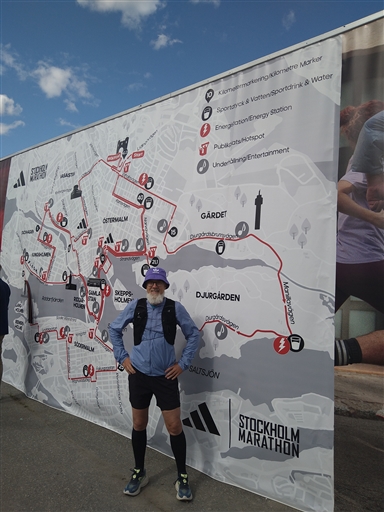 Löptur tillsammans med Morgan för att hämta startnummer för morgondagens uppdrag som farthållare på Stockholm Marathon.