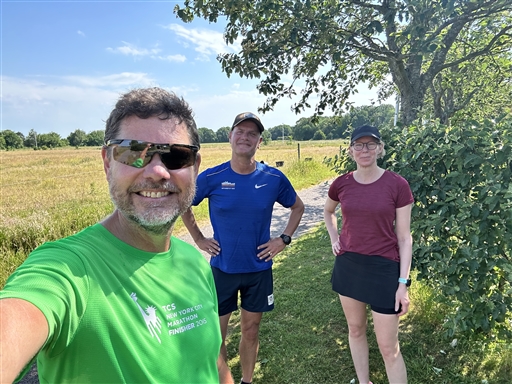 Kan löprundan bli bättre? Strålande solsken, vindstilla, trevligt sällskap, kattklappning och en dålig vits. En dryg halvmara in på friskvårdskontot. Jag var dryg och det blev en halvmara. 🤪