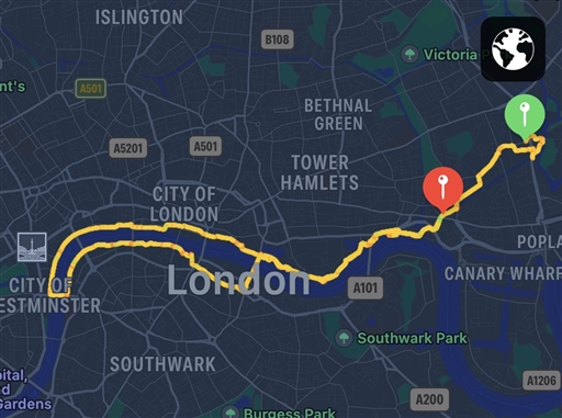 Mycket vacker sommarkväll. En del människor i centrala delarna, mer än när jag var här under pandemin skulle jag gissa. Fantastiskt att köra samma vägar till stora delar som jag körde förr. Regents kanal + längs Thames var slutsträckan på långpassen medans biten där Tower Bridge - Big Ben kördes väldigt mycket för tröskel. Älskar London och att vara tillbaka här!!