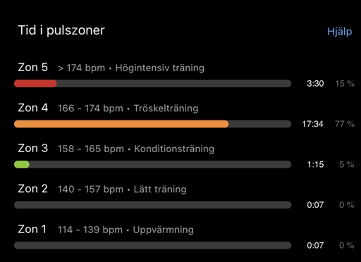 Lite osäker på formen men fick ett bra kvitto👍🏼 lite nedtränad och hade svårt att ta ut mig. Bra kontrollerad känsla. Typ tröskelansträngning. 6 slag lägre snitt än senast.