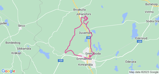Förmiddagspass. Emmaboda-Västra Hällasjö-Broakulla-Emmaboda. Mestadels grusunderlag. Något kuperat emellanåt, men inga längre backar eller riktigt branta backar. Mestadels soligt. Det blev tre varv på motionsspåret i Broakulla (1 650 m) och mot slutet av passet blev det två varv på motionsspåret i närheten av centrala Emmaboda (1 250 m). Det kändes något segt i benen under de första kilometerna av passet, men senare kändes det okej. Något ömt under vänsterhälen emellanåt. Lite extra ömt en stund efter passet, men efter ett tag ungefär samma fotstatus som inför passet. Detta är min sista semesterdag denna sommar. Det har blivit nya rundor nästan varje dag under denna tid.