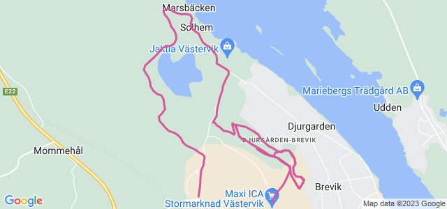 Kvällspass. Västervik. Till Maren och sedan Brevik motionsspår där det blev drygt 1,5 varv på gult spår, drygt 3 km långt. Hyfsat kuperat på vissa ställen. Något sega ben under passet och plötsligt extra segt kring 5 km, men det kändes ännu en gång lite bättre när jag kom till löpning på motionsspår. Endast 13-14 grader i luften. Regnigt under i stort sett hela dagen, men bara några minuter in i mitt pass så slutade det.