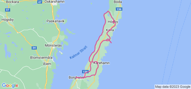Borgholm-Äleklinta-Hornsjön-Löttorp-Persnäs-Löt-Borgholm. Mestadels mulet under de första två timmarna. Därefter var det soligt. Lite småkyligt under början av passet när det var morgon, men under den sista tredjedelen av passet var det cirka 20 grader varmt. Ganska trötta ben och kämpigt under de sista 90 minuterna eller så. Då var det ännu en gång att jag ofta orkade hålla igång i kanske max en minut och sedan fick jag trampa långsamt ännu längre tid för att ladda om batterierna. Jag har ju en fungerande pulsmätning på löparklockan igen. Alltjämt låg snittpuls på cykelpass trots att benen alltså blev tydligt trötta efter att tag. Jag stannade löparklockan omkring 50 km för inta lite föda: banan, proteinbar, russin och en halv sportdryck. Det blev en gel omrkring 80 km också. I övrigt blev det intag av vatten från vattenflaskan under passet. Nu har jag haft ett långt långpass och ett kort långpass i löpning denna vecka samt detta cykel-långpass. Så nu har jag förhoppningsvis byggt ännu mer uthållighet inför Lidingöloppet. Och så har jag fått se ännu mer av Öland.
