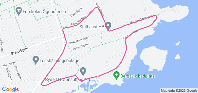 Eftermiddagspass. Bergavik. Mycket träningsvärk i låren från gårdagens lopp, men det lättade under passets gång. Vänsterhälen känns inte ett dugg extra öm idag trots det långa loppet igår.