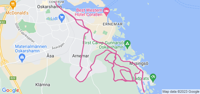 Kvällspass i Oskarshamn. Gunnarslöleden-Mysingsö-Kristineberg. Jag sprang flera kilometer i skogen på Gunnarsöleden. Jag tyckte att det var svårt att veta var jag befann mig på leden och jag avvek även från den vid mer än ett tillfälle. Tanken var att jag skulle komma ut på en mindre väg och sedan ta mig till Sjöbovikens vandringsled och Överby, men då jag inte hade något tydligt riktmärke på leden så fick jag skippa det. Nu så här i efterhand kan jag dock se på kartan att jag vid tre-fyra tillfällen kom till punkten där jag egentligen skulle ha vikt av. Jag tog det ganska lugnt under rundan så det kändes aldrig direkt segt.