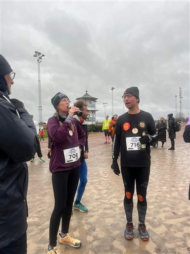 Ovanligt att springa på en travbana! Svårare med kurvorna än väntat, hård motvind ena långsidan men ändå kul! 10:a av damerna