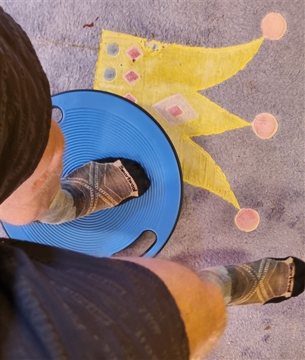 Löpövningar och PoE styrkepass med fokus på benstyrka plus lite egna övningar. Känns bra att kunna trycka på lite extra. Ny leksak gör vissa övningar lite mer utmanande.