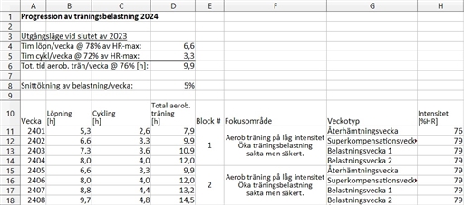 Den här grovplaneringen sket sig redan första dagen, se veckans planering. Bestämde mig för att öka istället för att ta återhämtningsvecka första veckan på året.
