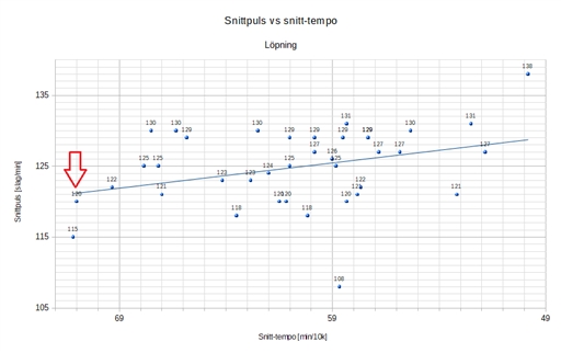 Ingen vidare hög puls idag. Det var väl en kombination av att det var brötigt och att jag inte hade någon större lust att försöka forcera. Tyckte det var rätt skönt att bara lalla runt lite i spåret utan någon press. Kroppen kändes väl rätt ok annars.