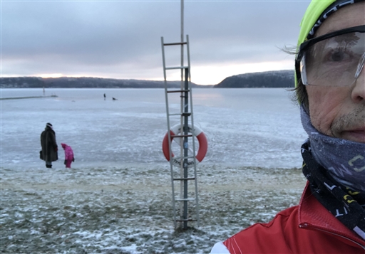 Bilden ifrån stranden mot en isigt Aspen.