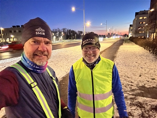 @hakanklippenbock vred om armen på mig och tvingade mig att springa en sväng med honom. Av bara farten fortsatte jag lika långt till efter jag lämnade av honom hemma. Det började frysa på ordentligt men vi klarade oss fint ändå. Härligt att vi hade dagsljus lite mer än halva rundan. Kom igen solen! Kämpa!