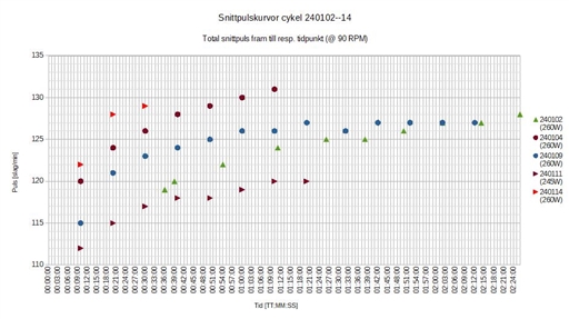 Etapp#/Tot. tid/Momentanpuls(etappslut)/Maxpuls(etapp)/Snittpuls(etapp)/Snittpuls totalt