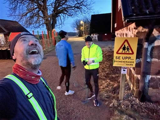 En inställd vilodag är också en vilodag (har jag hört). @johan.holmsten skulle tvunget springa en sväng idag så då får jag som jourhavande löparkompis ställa upp. @hakanklippenbock följde också med på rundan för att se till så vi höll ner tempot. Vi undersökte också en missvisande skylt längs vägen. Men vi kunde bara se månen. Inga lekande flygande barn någonstans. 🤪🏃♂️