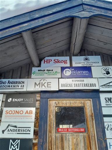 Till skoterstugan med Camilla och Emanuel för en fika och se om min sponsorskylt kommit upp.