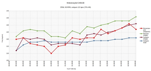 Lågpulspass på motionscykeln (73%, TRIMP=252,7)