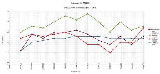 Lågpulspass på motionscykeln (71%, TRIMP=149,3)