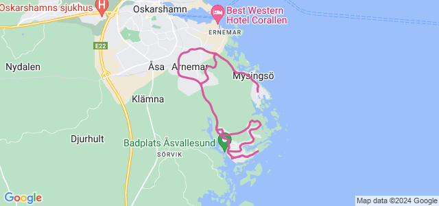 Runt Stångehamn och Mysingsö i skymningen. Bekväm jogg i zon 2 stundom avbruten av små graciösa ryck.🧚 Sista halvtimmen började det regna så jag blev lite blöt. Annars riktigt god känsla.