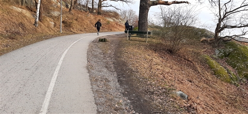 Förbi Pampas marina och Huvudsta gård längs vattnet fram till Huvudstabron, och samma väg tillbaka. Fin väg, men ack så backigt närmast den bron. Lite fram och tillbaka framför Karlberg slott fick avsluta så jag kom upp i planerat antal kilometer.