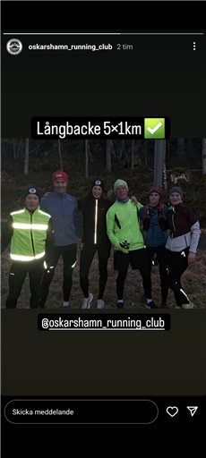 Lång uppjogg till andra sidan stan där jag mötte Madde, Bea och Edwin. Vi sprang 1 1/2 varv i slingan innan vi tog oss an backarna. Då anslöt även Karin. Två backar, en kortare och en längre, som vi sprang fem gånger var. Jag kände mig sliten och hamnade snart på efterkälken vilket passade mig utmärkt - höjdmeter utan att slita ut mig. Men efter halva passet stod plötsligt Magnus och Johan där. Vi snackade en stund, sedan började Magnus springa med mig och då var det slut med de lite lugnare backintervallen.🤪