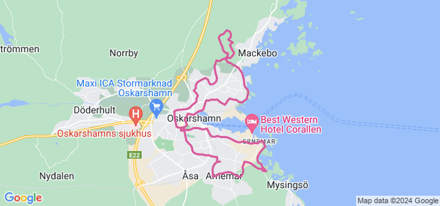 Jobbar med clownen Karin den här veckan och hon frågade mig var man kan löpträna här i stan. Upplagt alltså för att ta med henne på en runda. Jag hämtade henne vid hotellet och så drog vi iväg runt Kolberga och Havslätt. Vi mötte Annika och Lennart på hundpromenad! Mycket hade vi att snacka om så tid och kilometrar flög iväg. Efter att ha lämnat Karin vid hotellet igen var jag på gott humör och tog en sväng neråt Gunnarsö också.